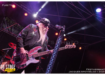 Arrive le moment de l’invité surprise, que depuis hier n’est plus une surprise, Fuzz Top. Nous finissons ce Festival avec du blues rock texan. Fidèle aux riffs de guitares, aux chansons, aux barbes et aux costumes d’origines, ce groupe français revendique d’être à la fois un Tribute mais aussi des Sosies du groupe ZZ TOP. Leur show est bien préparé, et minuté pour donner l’illusion d’être devant les vrais ! Quant à tout cela s’ajoute le talent de supers musiciens ça donne concert est vraiment TOP !