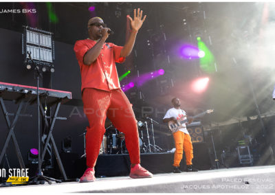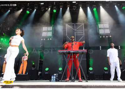 18h, Grande Scène ave James BKS. Ce franco- camerounais mélange les sonorités de son pays, avec du hip-hop électrique. Il est accompagné de deux choristes, ce qui amène un soupçon de douceur. Le duo avec la chanteuse est top ! Pour lui, c’est Best Kept Secret, ‘’ le secret le mieux gardé !’’, alors chut…. On ne dit rien ! on écoute !