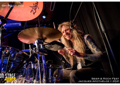 Le 4ème et dernier groupe de la soirée est le groupe que notre photographe et votre rédactrice à le plus suivi durant cette année de reprise. Quelques personnes sont malheureusement parties au fil des concerts terminés, mais les Spit Reckless savent le faire… Grâce à leur jeu de scène, leur énergie et leur joie communicative, font que les veinards qui sont restés en prennent plein les yeux et les oreilles. ‘’You make my happy’’ comme ils disent.