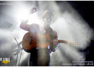 Dernier concert sur la Scène du Lac, Gaël Fauve. Révélé, il y a quelques années par la Nouvelle Star, il nous présente son nouvel EP : ‘’ L’eau et la peau’’, et … ‘’ C’est la condition pour jouer sur le lac !’’. La voix est envoutante, les rythmes langoureux. Les festivaliers se rapprochent, en cette douce soirée d’été.