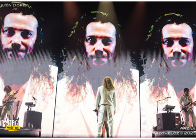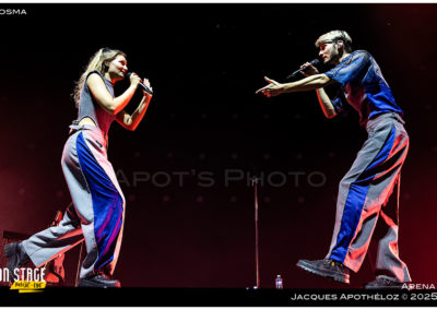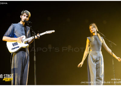 20h, en première partie, nous découvrons un duo de pop française, Kosma. Ils sont jumeaux, ils sont jeunes et ils sont multi-instrumentistes. Les textes des bordelais sont légers et « positivement positifs ! » Leur complicité est électrisante. Seuls sur scène, ils débordent d’énergie et profitent à fond de ce moment pour embarquer l’Arena dès les premières mesures ! « On vit, on meurt et tout recommence ! » Ce fut court, intense et poétique. Moment cosmique !