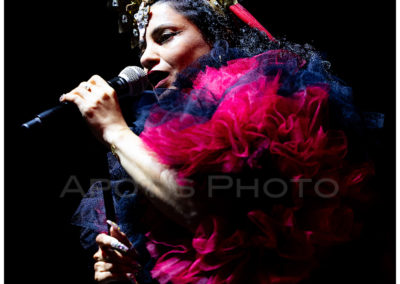 20h30, dans son magnifique costume, la chanteuse tunisienne, Emel est le symbole de la liberté de la femme dans son pays, et se bat pour cela, ceci à travers une pop électro orientale. Sa voix est puissante, et monte dans les aiguës pour faire entendre ses idées, le tout aux rythmes des tambours qui marquent le tempo, en mode guerrier !