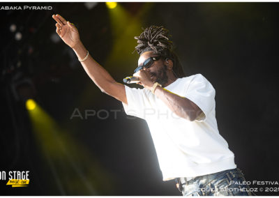 19h15, « Paléo, Paléooooo … ». « L’artiste made in Jamaïca » Kabaka Pyramid fait son entrée. Moment rythmé par le reggae, avec une pointe de hip hop, on est à la cool. Les festivaliers sont à l’écoute du chanteur et participent à fond !