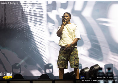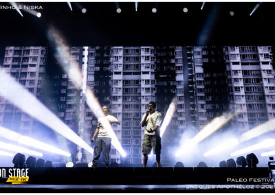 Minuiiiiiiit, Ninho & Niska, c’est un changement d’ambiance. La très jeune foule est littéralement plaquée contre les barrières pour accueillir ce duo de rappeurs. Le premier son retentit et maintenant ça se compresse dans les premiers rangs. Maitres en la matière, ils électrisent les dizaines de milliers de festivaliers massés sur la plaine de l’Asse. Moment tendu pour les personnes de la sécu, ce qui fait que les photographes doivent quitter le pit prématurément.