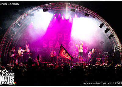 22h, le groupe suisse Open Season est près, « il déborde de joie de vivre ! » et c’est vraiment vrai ! C’est une vraie p’tite colo sur scène., avec la section cuivre, les rythmes sont vraiment entraînants et festifs. « Public … réveilles-toi ! » Après l’hymne de l’Euro 2016, on remet ça, « ce soir on fait la fête, on est tous ensemble ! »