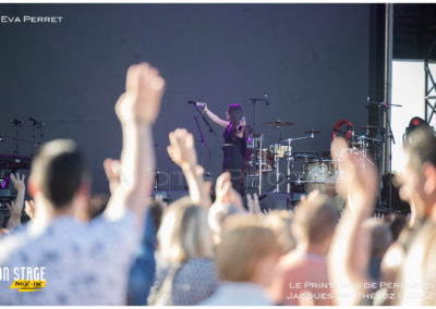 19h, Eva Queen ou simplement Eva, chanteuse de pop urbaine, est attendue par les festivaliers. Entourée de trois danseurs, elle nous fait partager ses états d’âmes et ses émotions. Dommage que ça soit sur une bande son ! Le 1er rang du public, principalement de filles, reprennent, la larme à l’œil, en écho, les chansons qu’elles connaissent par cœur !