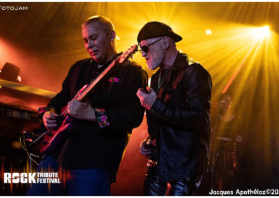 20h45, le groupe vient de Genève, nous les connaissons bien, mais c’est toujours pour nous, un grand plaisir de les retrouver sur scène, Toto Jam, Toto Tribute. Enrichit, à présent, de deux choristes supplémentaires, ils se retrouvent à huit sur scène, ce qui amène encore plus de dimension à leurs reprises, sans oublier la qualité et la clarté du son, qui est juste au top !