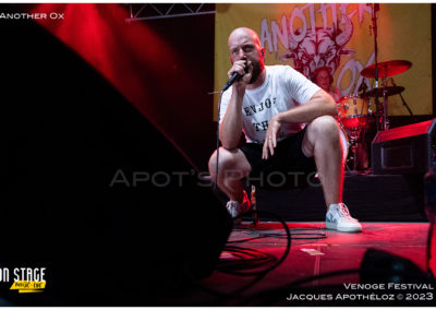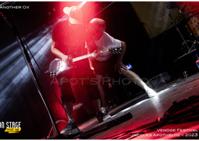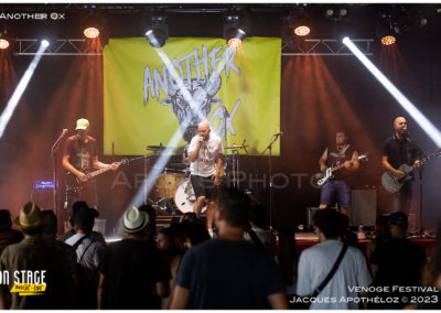 Anotherox, sur son de pop rock metal, Ils font leur show. Devant un public très claisemé, qui reprend en chœur « knock out » c’est génial !  Ils jouent en même temps que la gde scène … dommage !