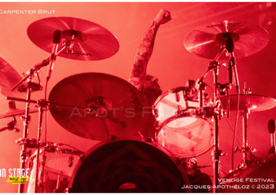 23h, dernier groupe de la soirée, Carpenter Brut. Le début du concert est très spectaculaire, tout en lumière, un light show incroyable ! La suite … manque un peu de chant … ! Heureusement … y’a des vrais musiciens !