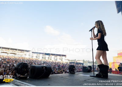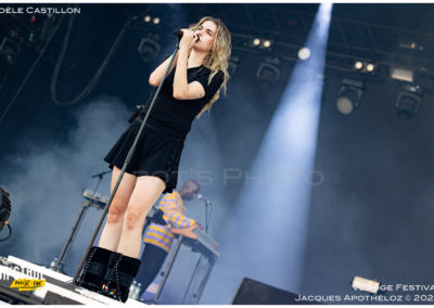 18h30, la chanteuse française Adèle Castillon entre en scène. Son style c’est l’electro pop, avec une écriture authentique qui touche. « Est-ce que mes amis suisses sont prêts à faire la fête ? » À voir la réaction des fans … aucun doute ! Elle est pleine de fraîcheur, naturelle et solaire. Beaucoup d’émotion au moment de la chanson « Gabrielle ». Très bon moment de complicité avec le public.