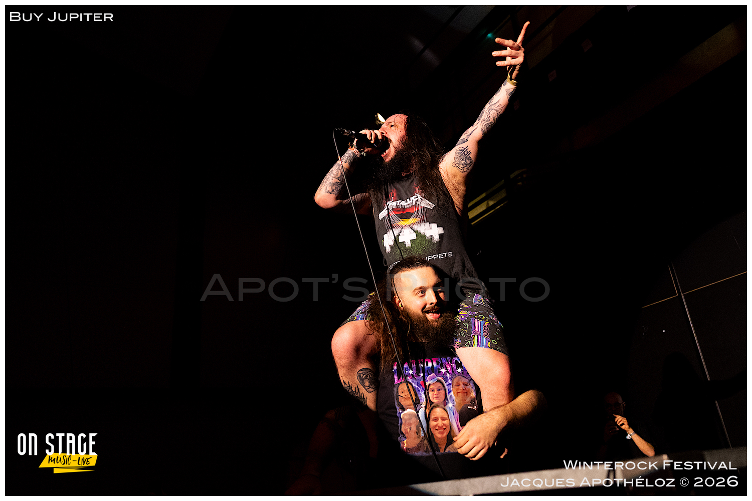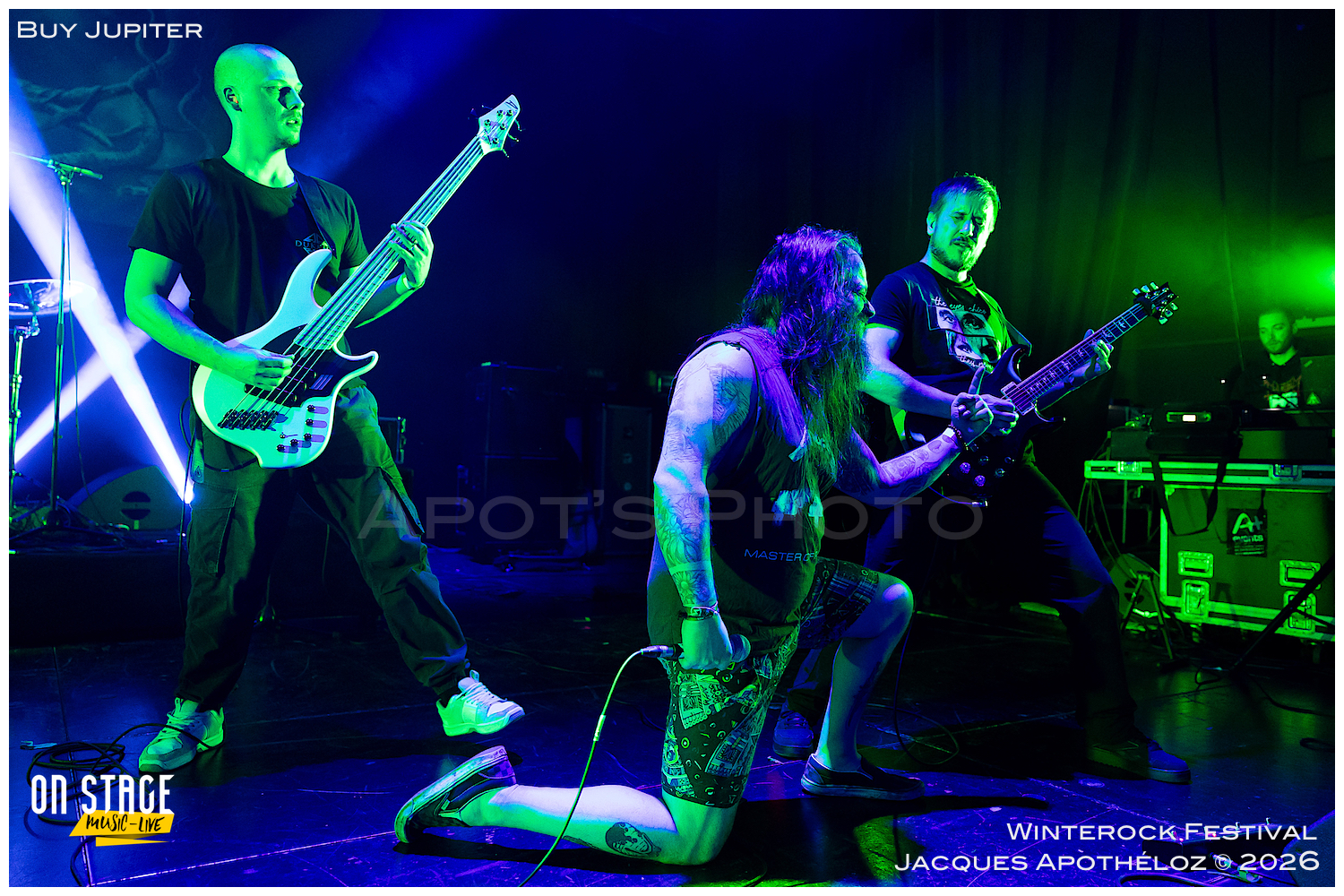 22h, tout roule, on continue et on change totalement de style de musique avec Buy Jupiter. Ils sont quatre, ils viennent de Lyon et ils jouent du death progressif. Des musiciens bien carrés dans le style, car aucune note n’est laissée au hasard et un « front man » bien barge qui attise la curiosité du public. Le mélange musical est surprenant, car la complexité des morceaux fait que des parties mélodiques presque romantiques, cassent la brutalité de ce métal technique. Une heure d’une belle folie qui ne nous a pas laissé indifférent.