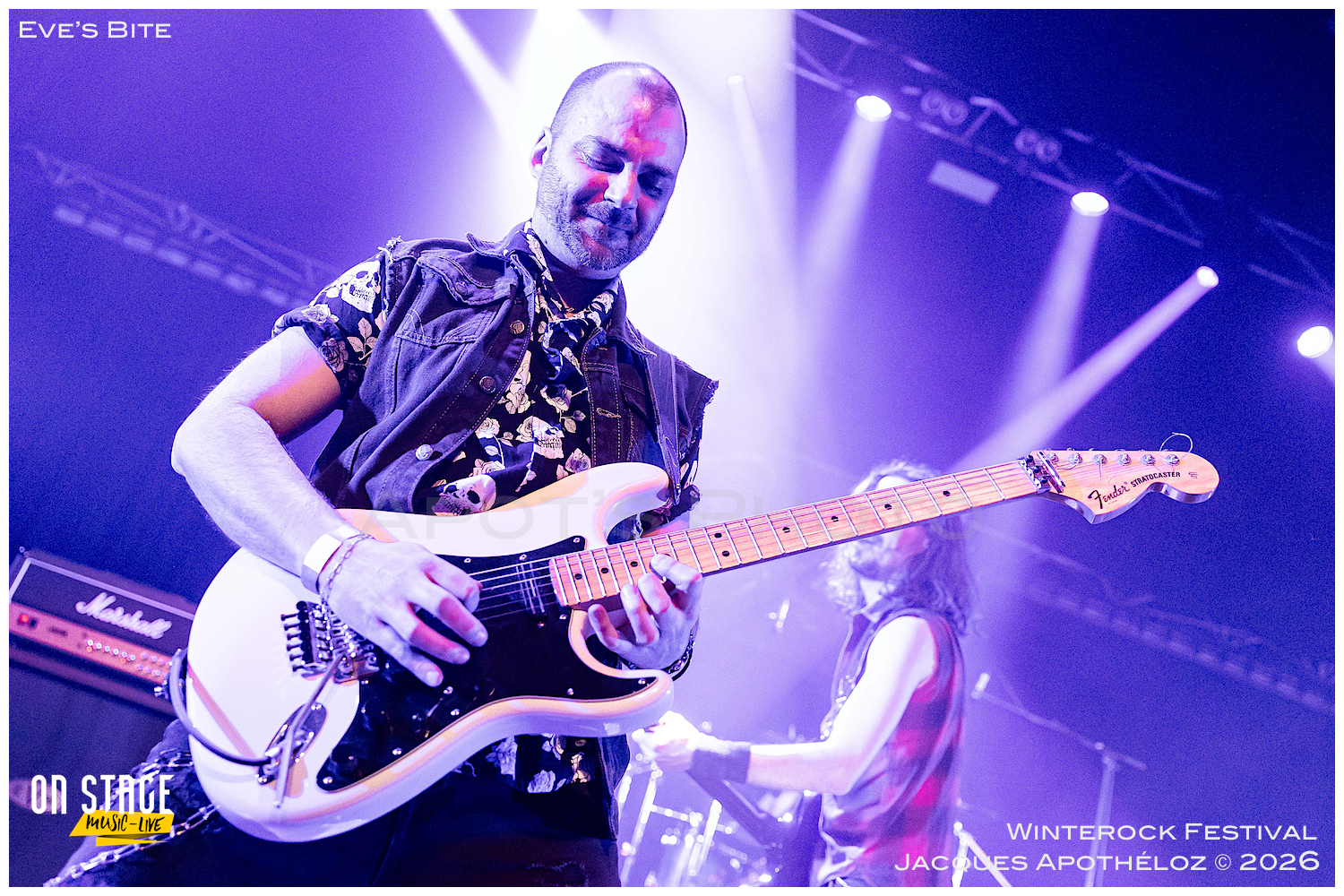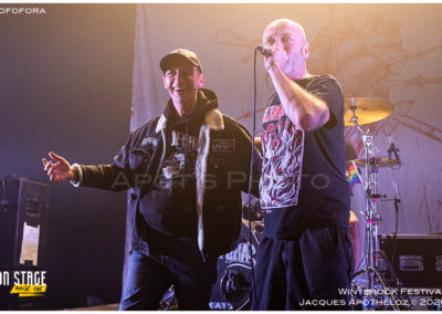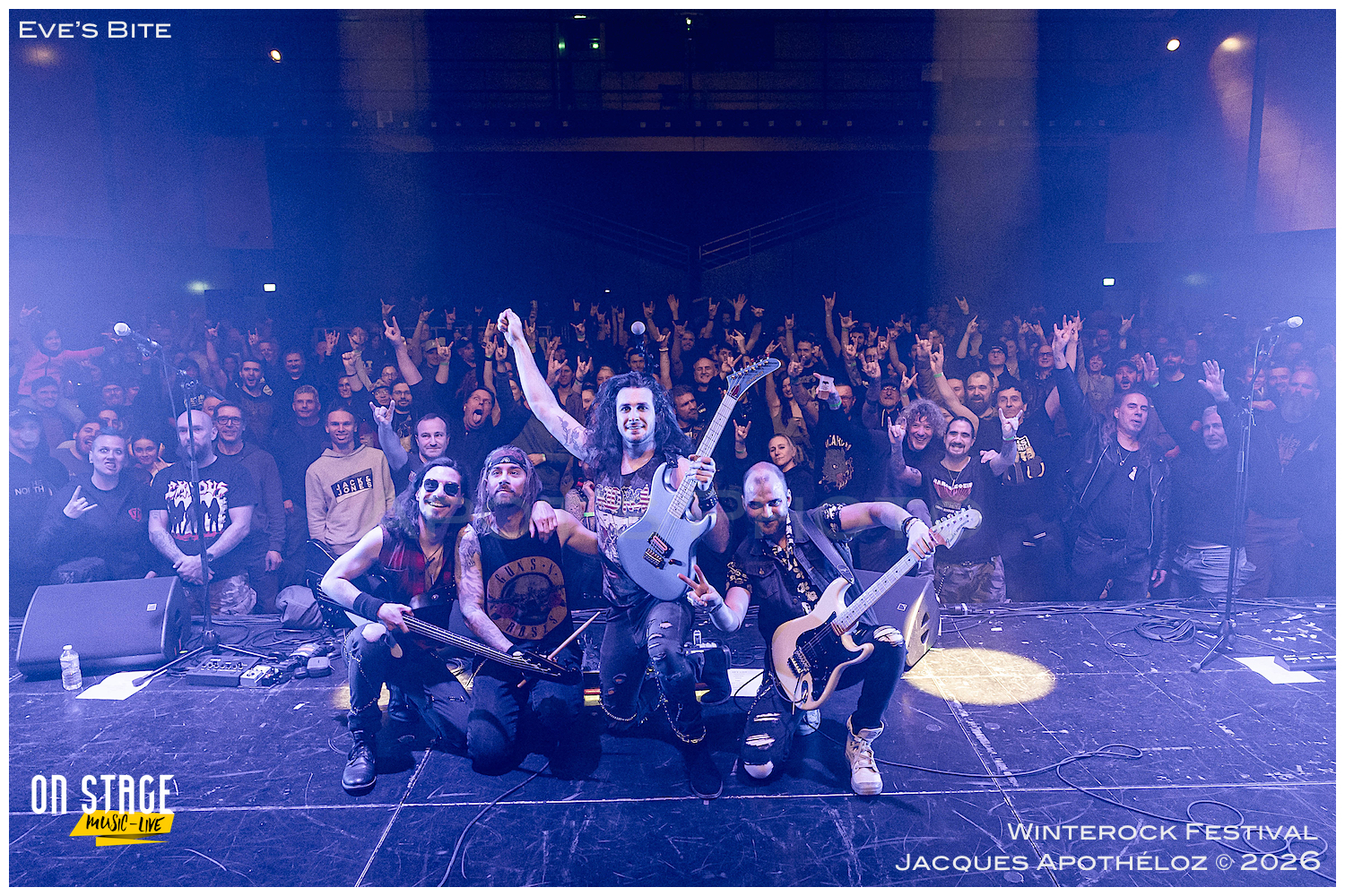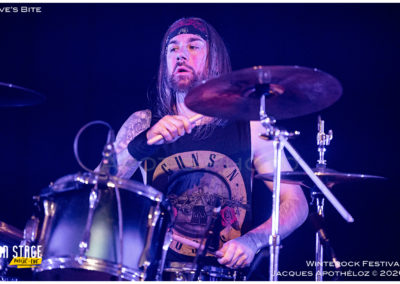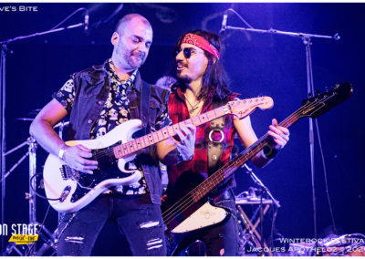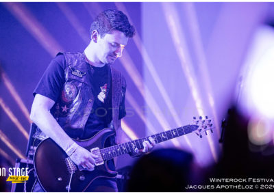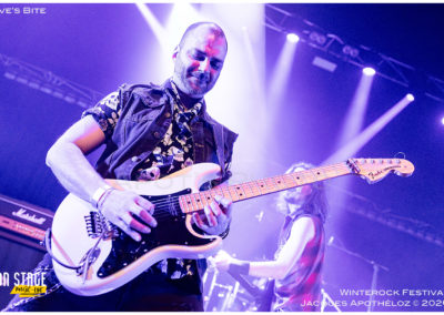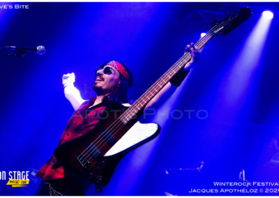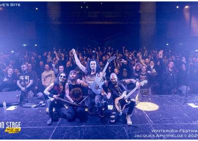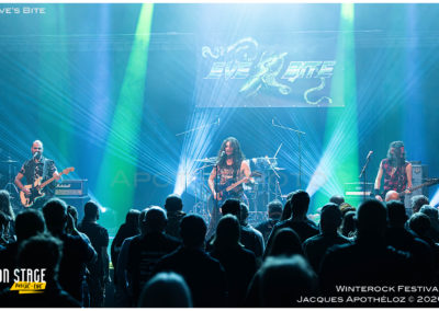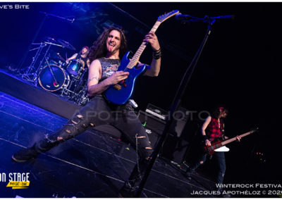19h30, c’est parti avec les stéphanois, Eve´s Bite. Dès les premières mesures, on y est, c’est du bon heavy metal très mélodieux, avec une voix qui monte bien dans les aigus, accompagné de chœurs à l’arrière, des beaux solos « battle » de guitares. « Vous êtes prêts à foutre le bordel ? Jouez pas les timides ! « Chouette moment, belle découverte et bonne « mise en bouche ! »