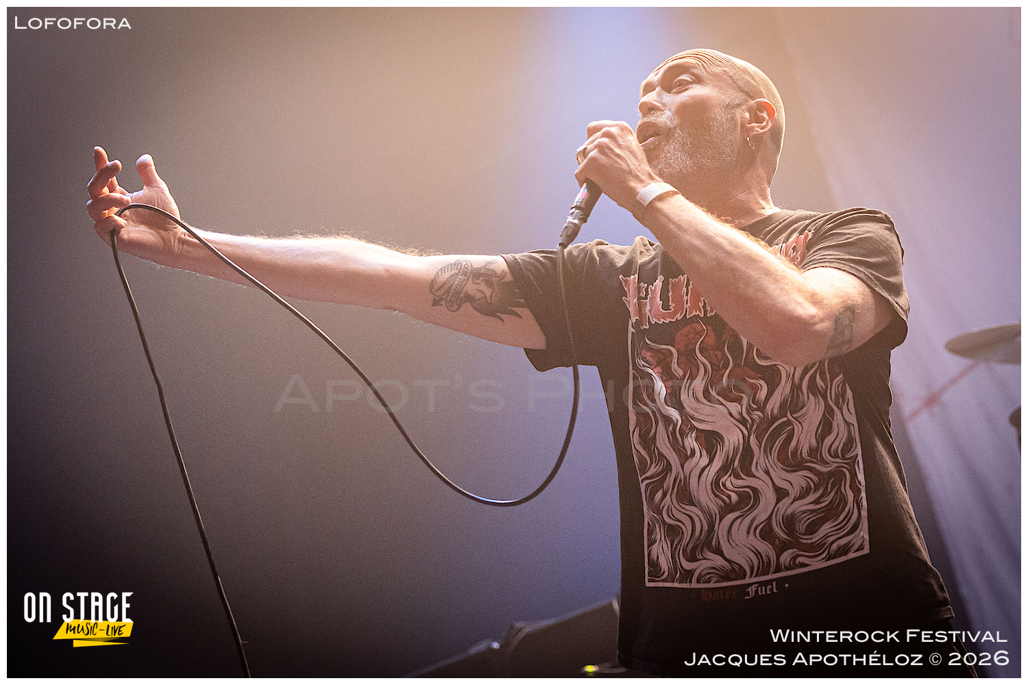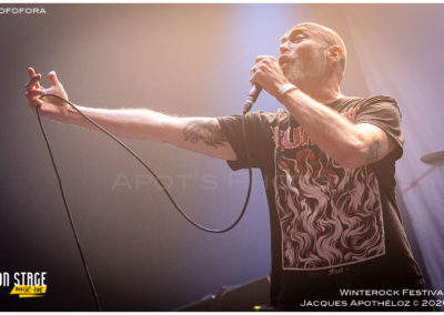 23h15, dernier groupe de cette deuxième soirée, ils sont parisiens, ils sont très attendus du public, c’est Lofofora. Eux, c’est du metal alternatif que nous attendions depuis un moment, ne les ayant encore jamais vu. Le tempo est vif et les paroles acérées, car oui, ça chante en français ! Politiquement correct, ou pas, les festivaliers connaisseurs, reprennent à tue-tête chaque mot de chaque chanson. Le plancher de l’Agora bouillonne, le public surchauffe et voilà que l’osmose opère. Sois-tu restes devant et tu pogotes, soit tu te recules et tu apprécies le spectacle et la musique. Dans les deux cas, le moment est incroyablement bon !