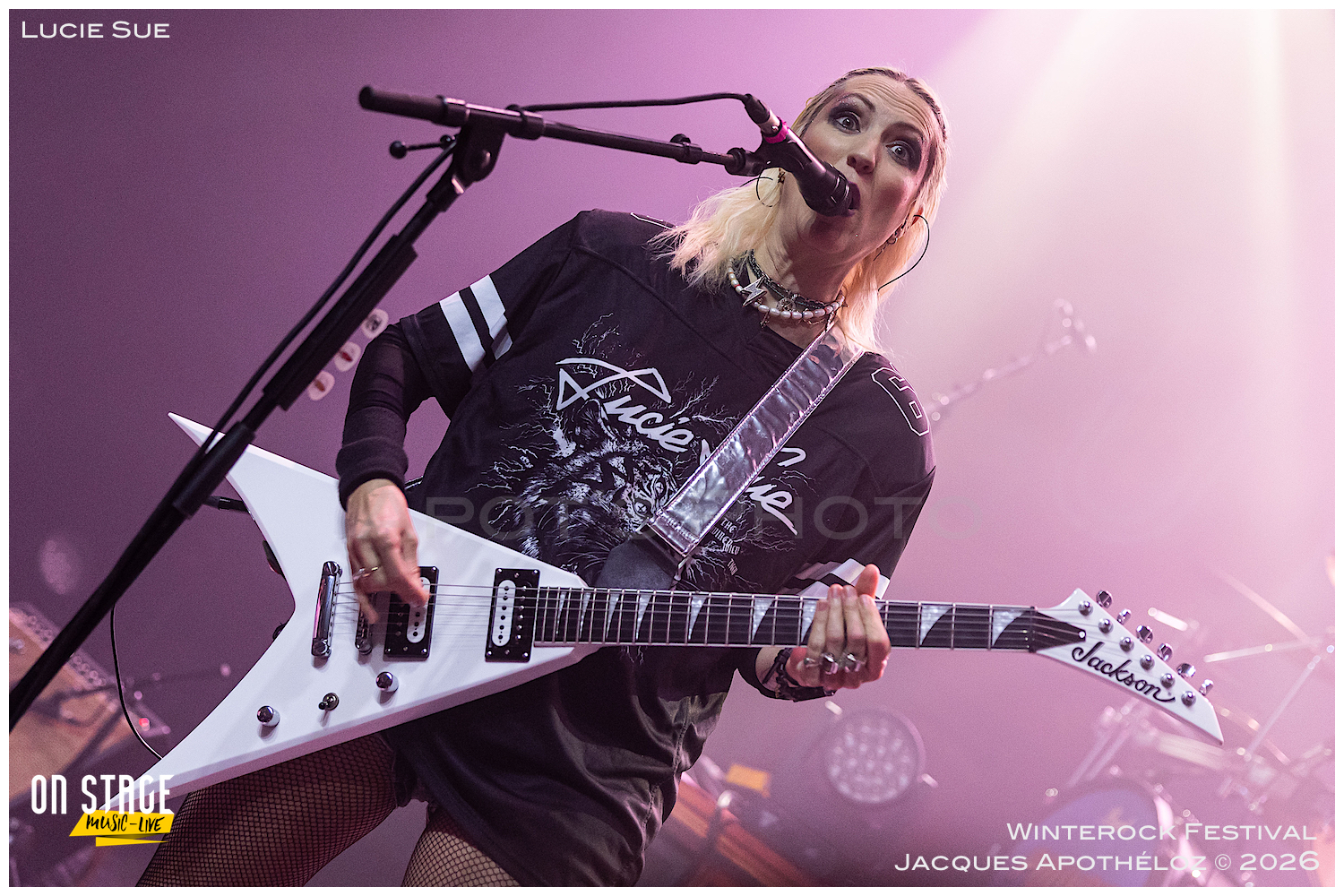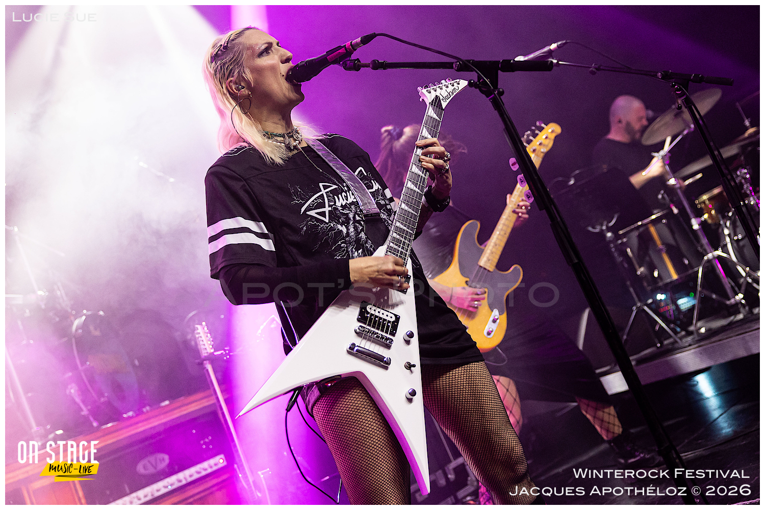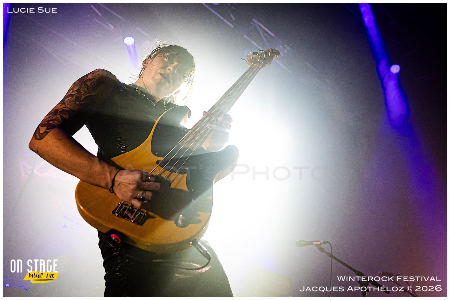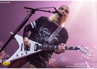 20h, ça commence avec Lucie Sue. Une découverte bien rock. Accompagnée d’une bassiste et de deux musiciens (guitare et batterie), fraichement arrivés dans le groupe. Lucie nous offre un son teinté de rock anglais, avec des riffs accrocheurs. Il n’en fallait pas moins au public pour s’approcher de la scène et apprécier, à sa juste valeur, l’énergie dégagée de ce quatuor endiablé.