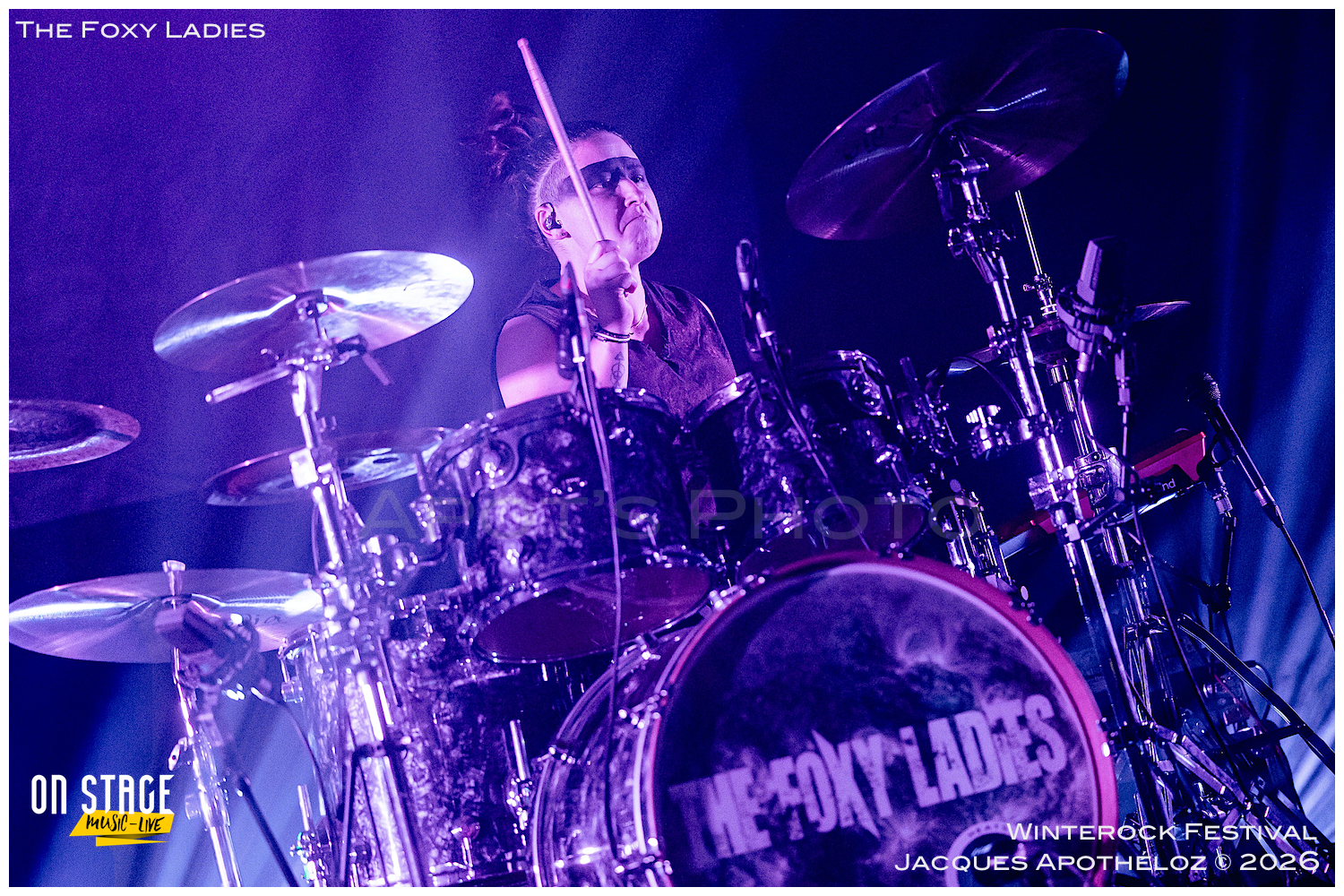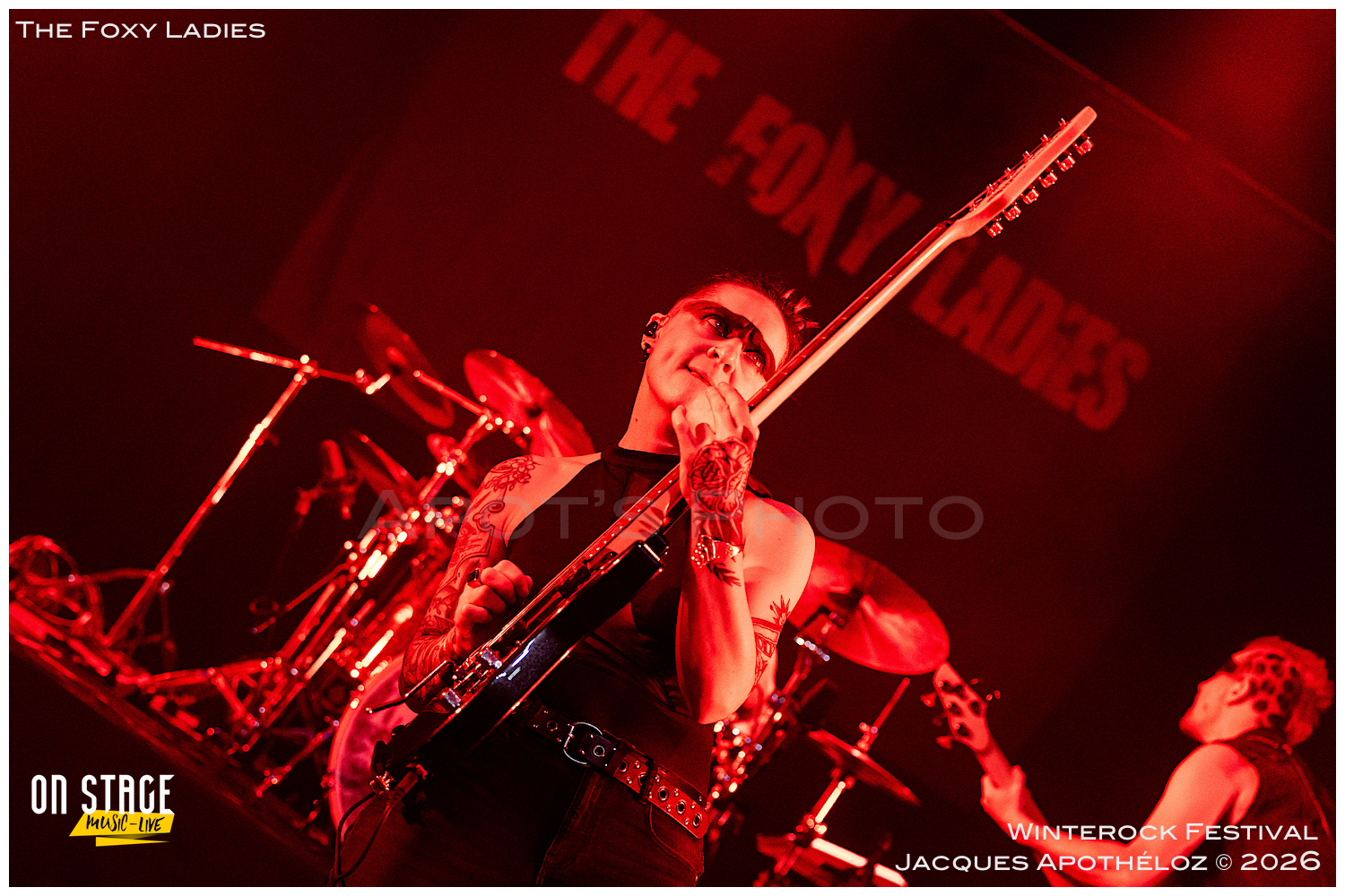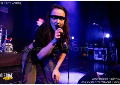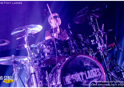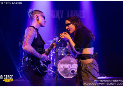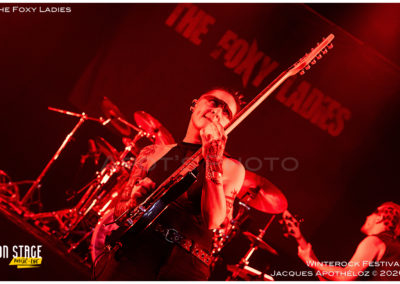 20h35, deuxième groupe de la soirée et c’est au tour des lyonnaises, The Foxy Ladies. Un nouveau bassiste(masculin) rejoint le groupe, à la base, essentiellement féminin. C’est toujours un plaisir de les revoir avec leur rock accrocheur qui transpire le punk et le hard rock. Affublés d’une bien mystérieuse bande noire sur leurs yeux, leur partage sur scène fait plaisir à voir et se fait ressentir devant la scène. Nous on dit que c’est vachement bien ce qu’ils font !