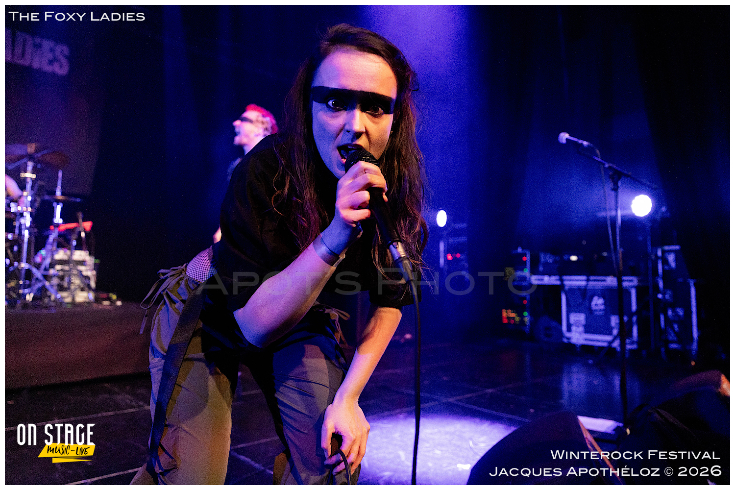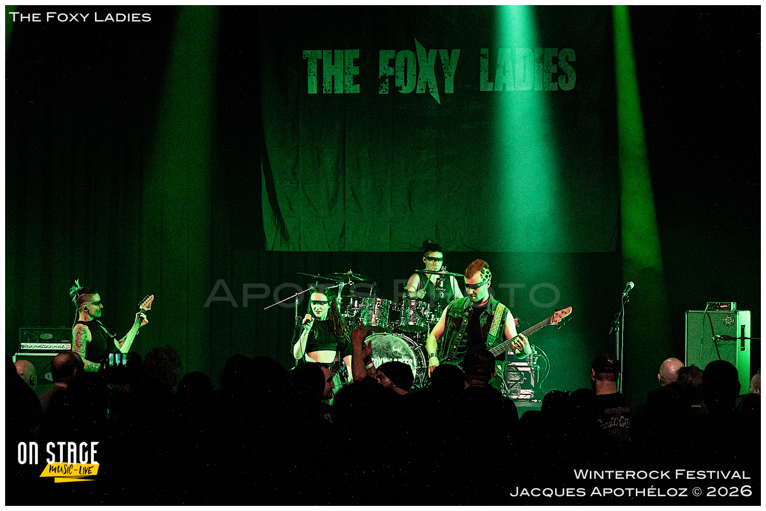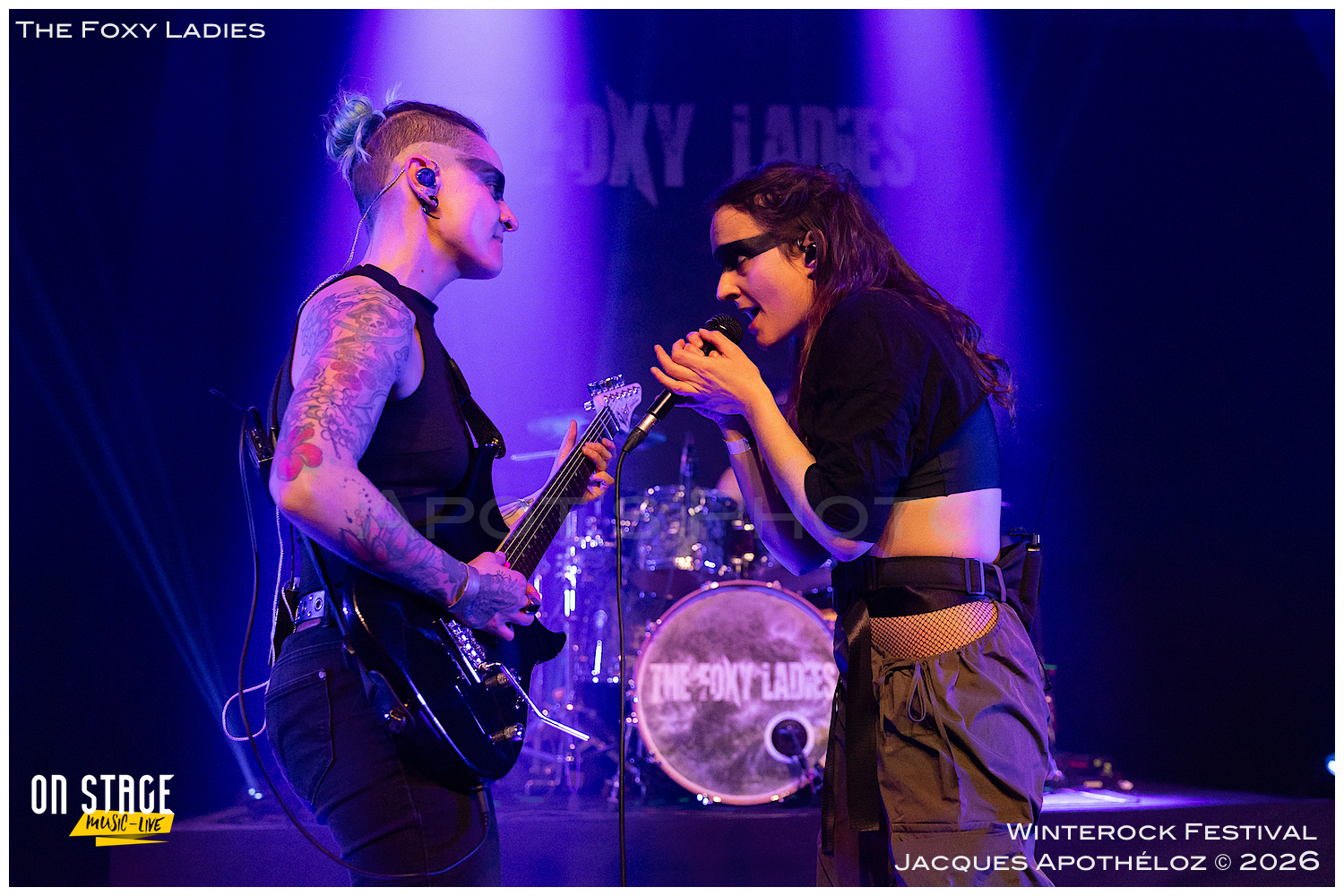 20h35, deuxième groupe de la soirée et c’est au tour des lyonnaises, The Foxy Ladies. Un nouveau bassiste(masculin) rejoint le groupe, à la base, essentiellement féminin. C’est toujours un plaisir de les revoir avec leur rock accrocheur qui transpire le punk et le hard rock. Affublés d’une bien mystérieuse bande noire sur leurs yeux, leur partage sur scène fait plaisir à voir et se fait ressentir devant la scène. Nous on dit que c’est vachement bien ce qu’ils font !